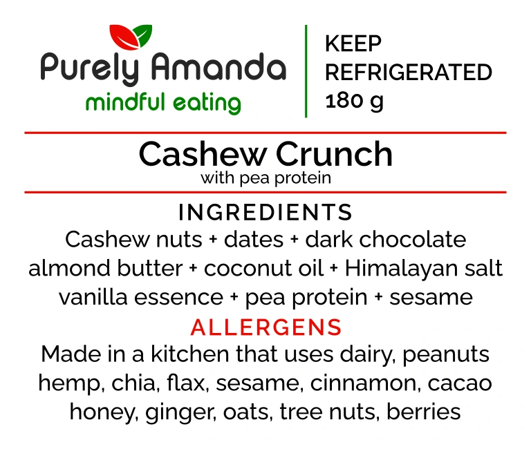Cashew Crunch is a decadent yet nourishing combination of roasted cashew nuts, naturally sweet dates, and smooth almond butter, all wrapped in a thin layer of rich dark chocolate.